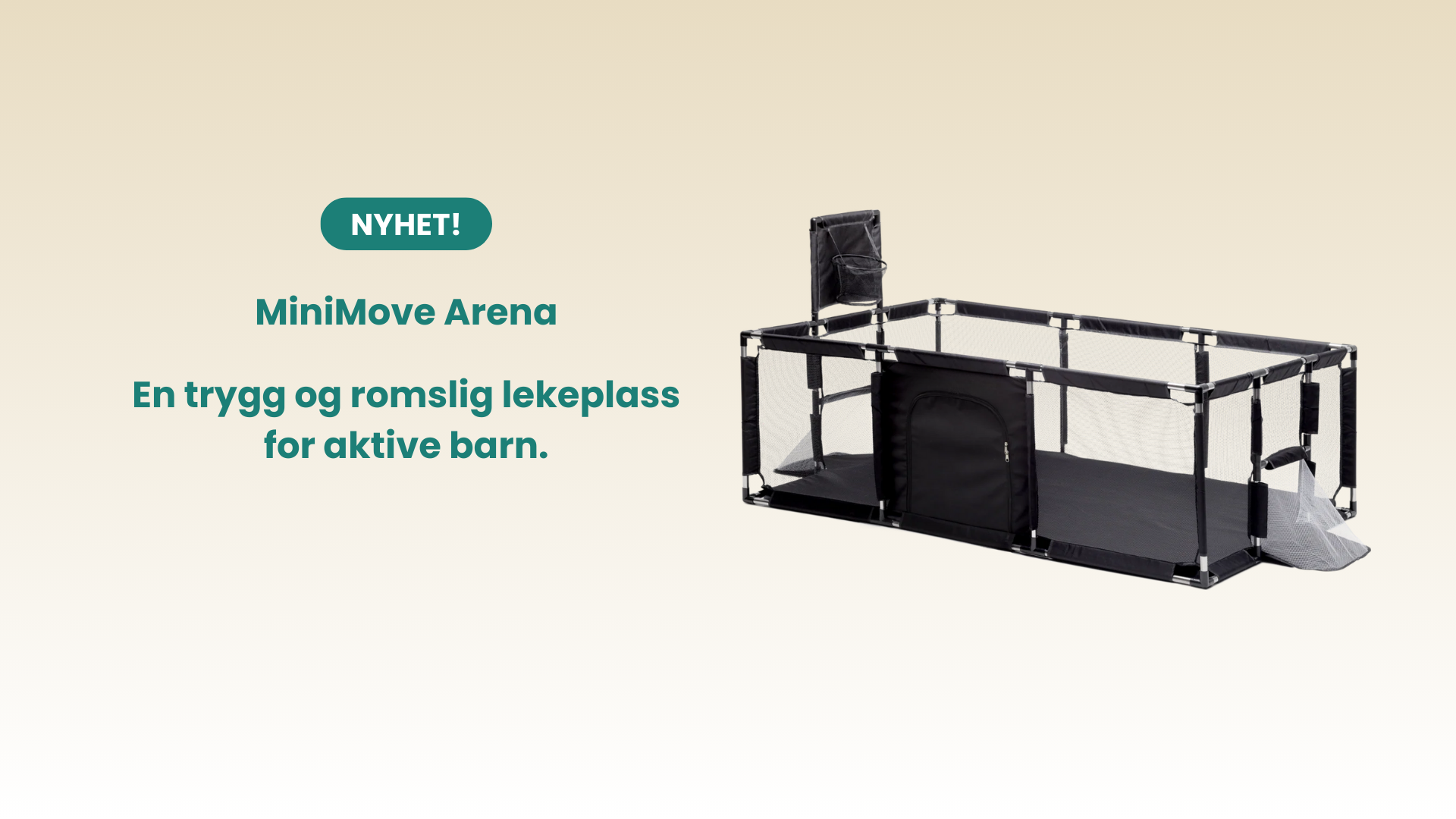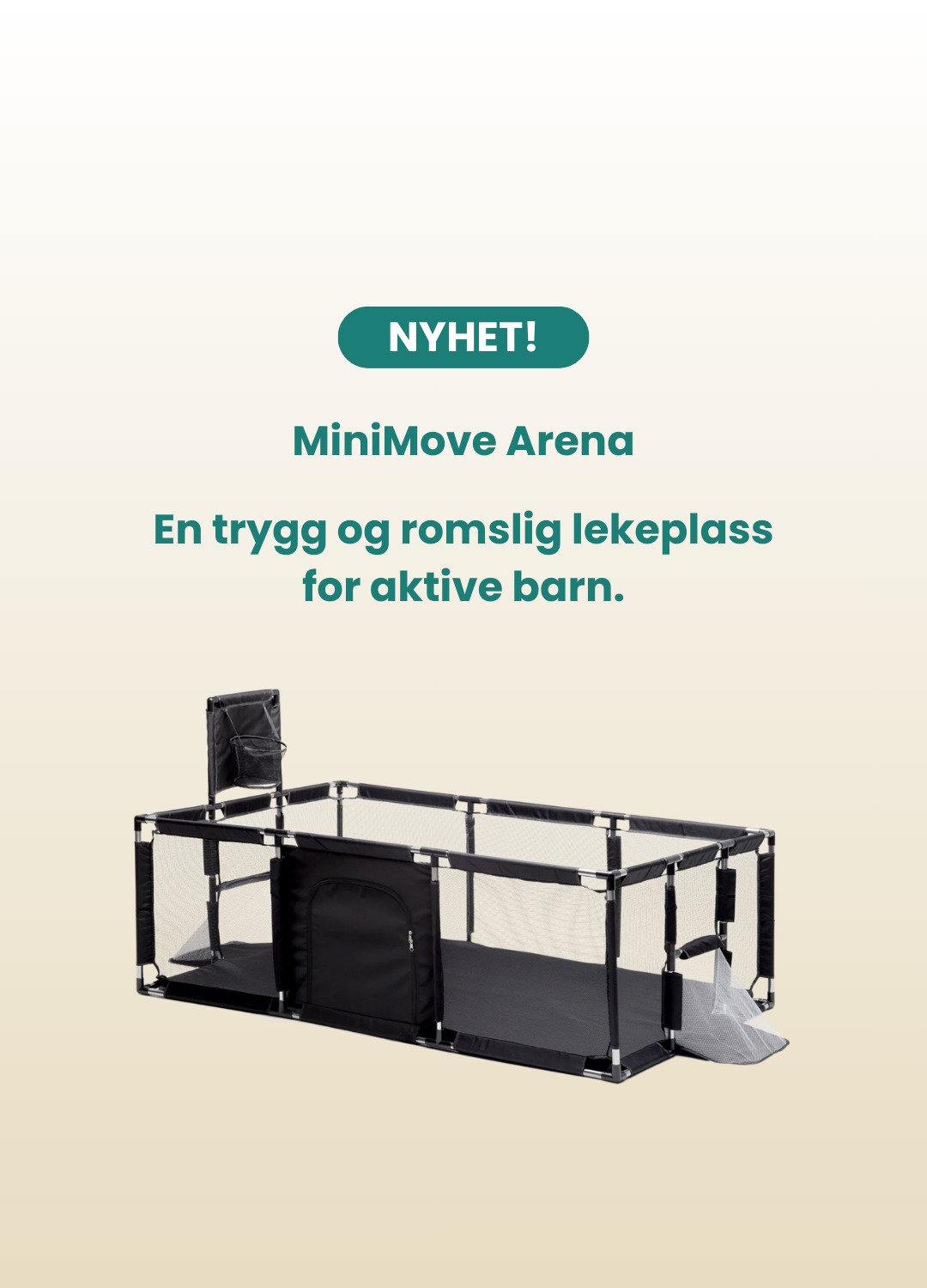 MiniMove Arena er en robust og romslig lekeplass for barn 0–6 år. Den gir barnet et sikkert område å leke og bevege seg i, samtidig som du har full oversikt. Med sterke materialer, polstring og smart design gjør arenaen hverdagen enklere og tryggere for hele familien.